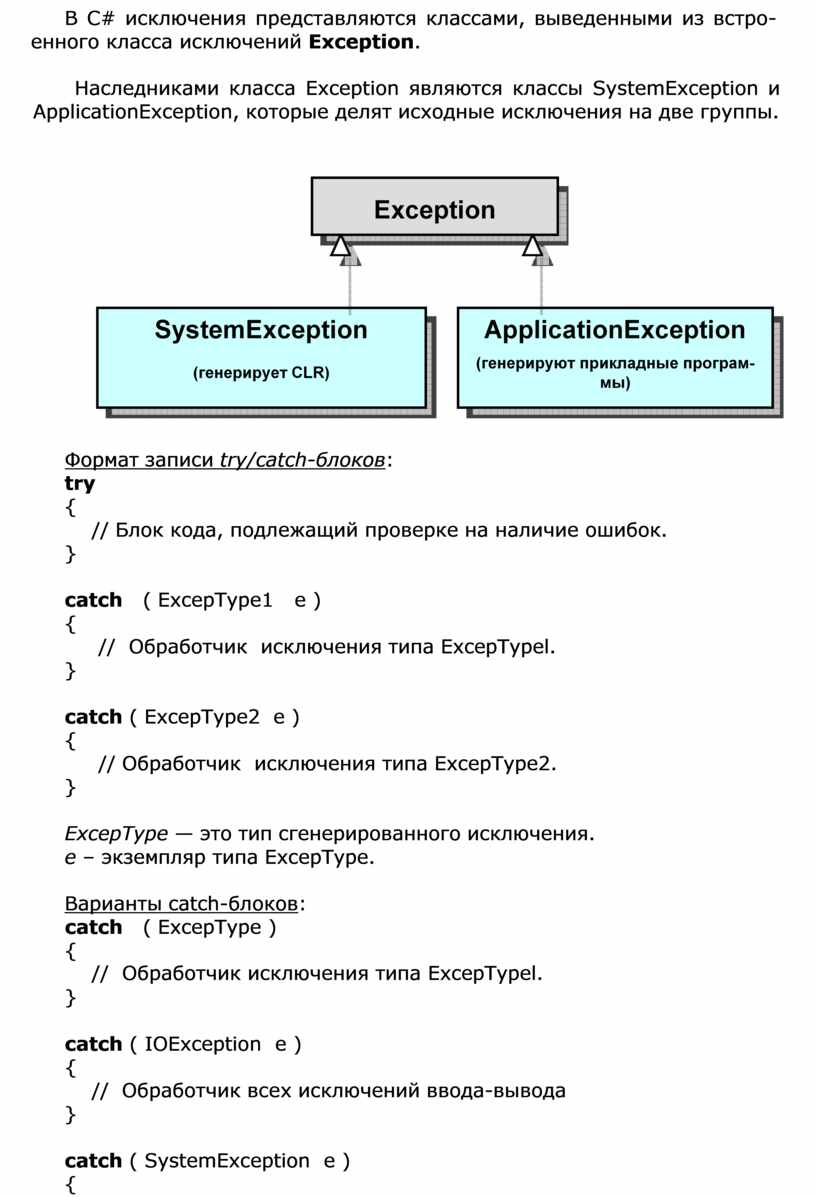 Организация обработки исключений в С#