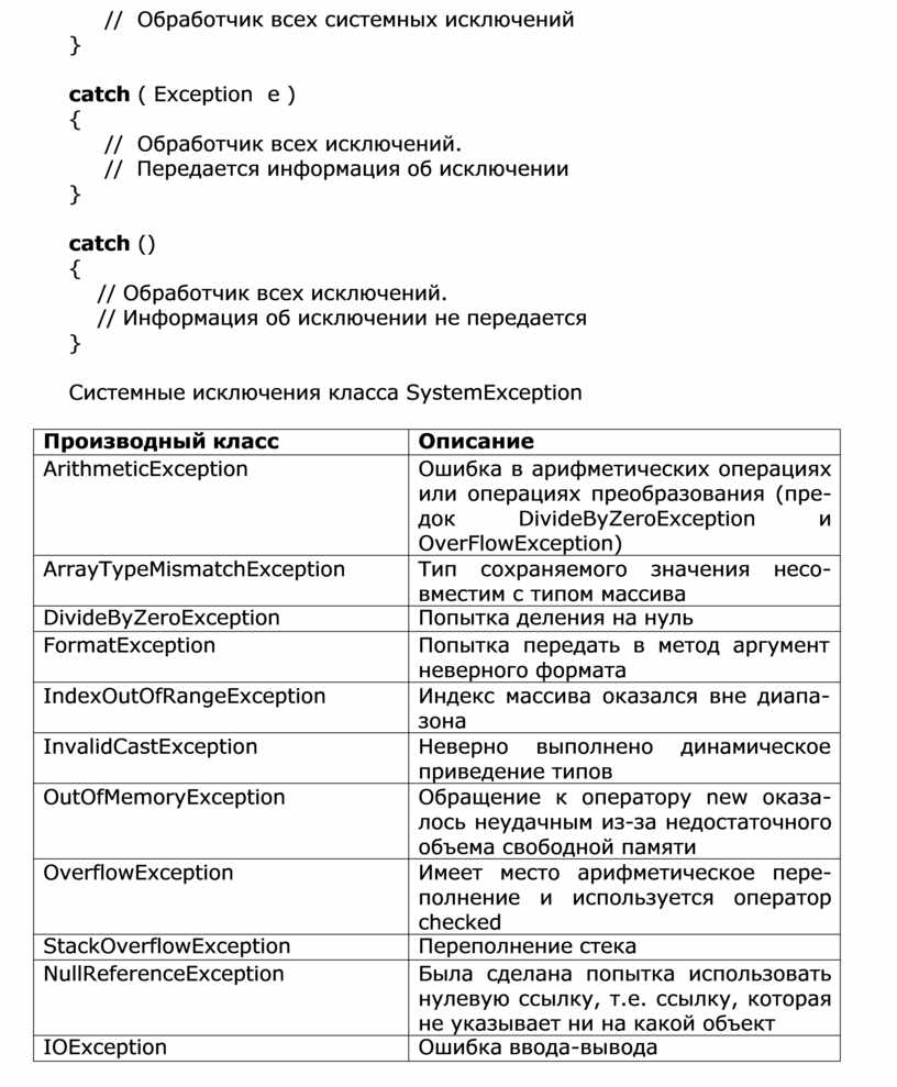 Системные исключения класса SystemException