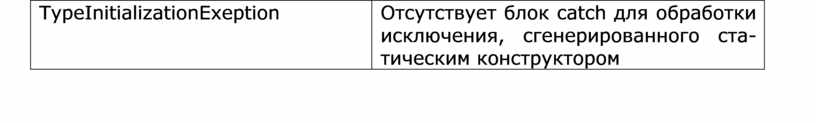 Отсутствует блок catch для обработки исключения, сгенерированного ста- тическим конструктором |