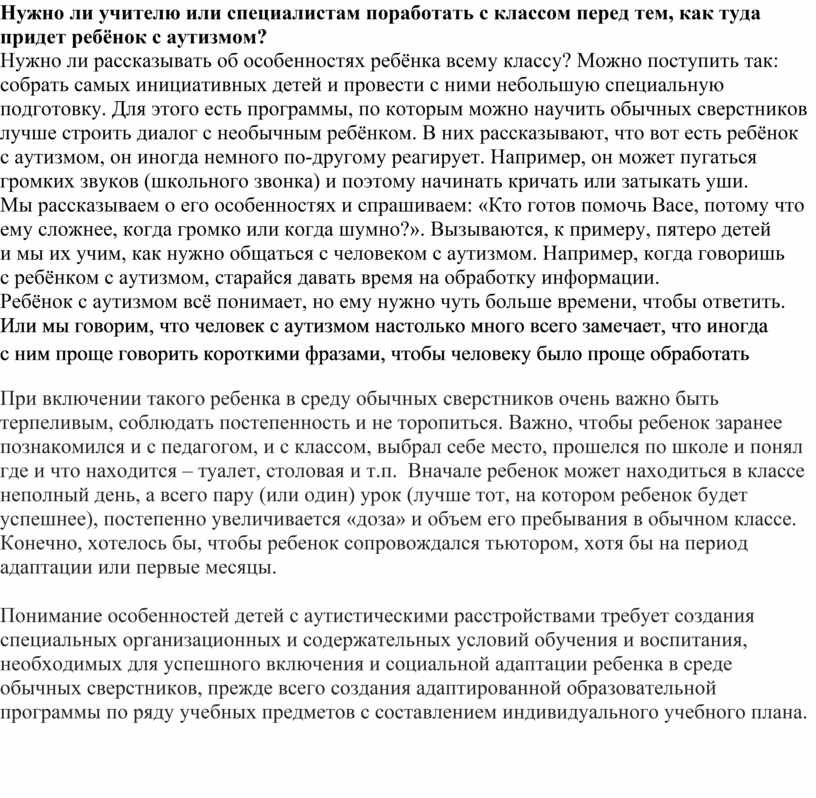 Нужно ли учителю или специалистам поработать с классом перед тем, как туда придет ребёнок с аутизмом?
