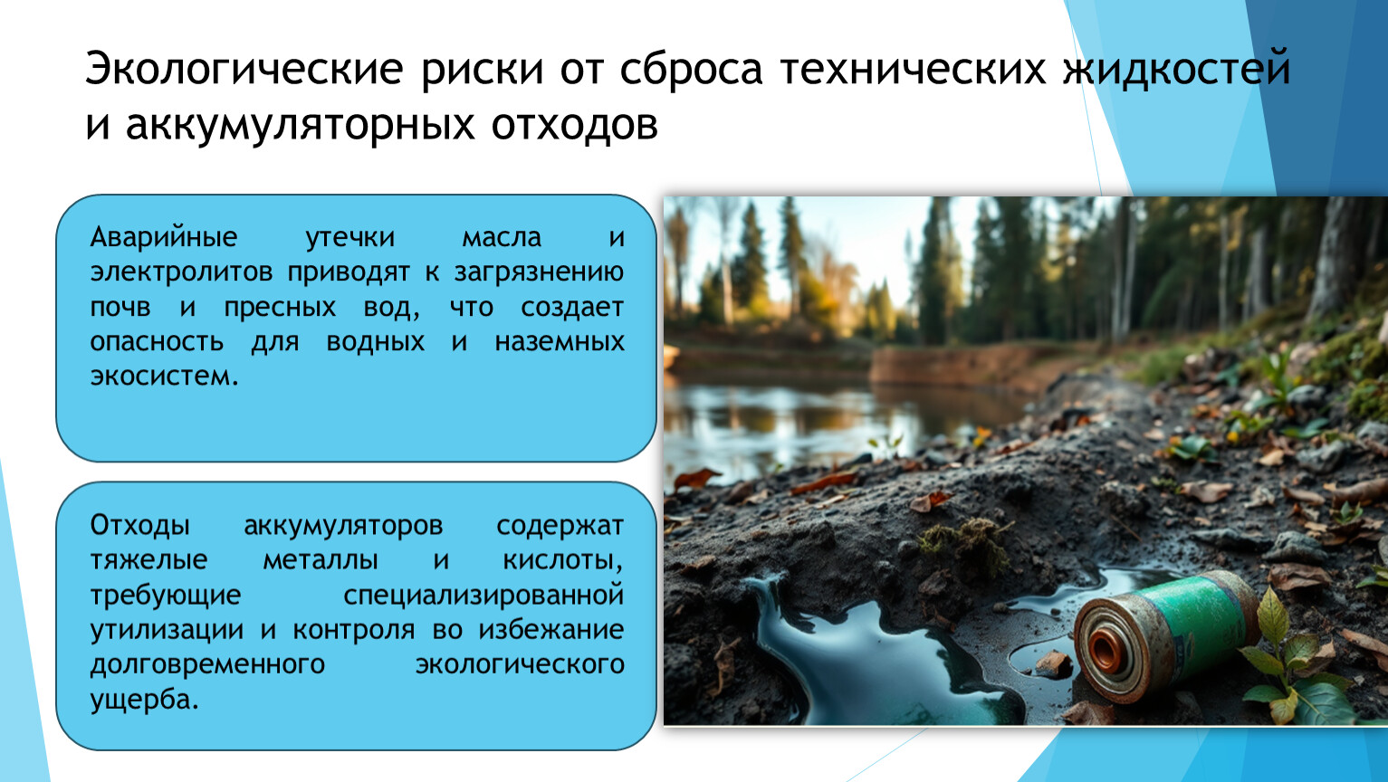 Экологические риски от сброса технических жидкостей и аккумуляторных отходов