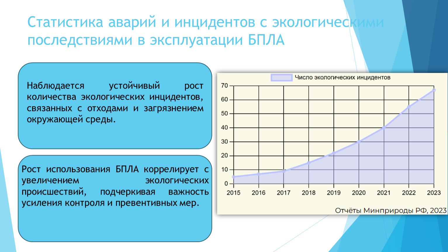 Рост использования БПЛА коррелирует с увеличением экологических происшествий, подчеркивая важность усиления контроля и превентивных мер.