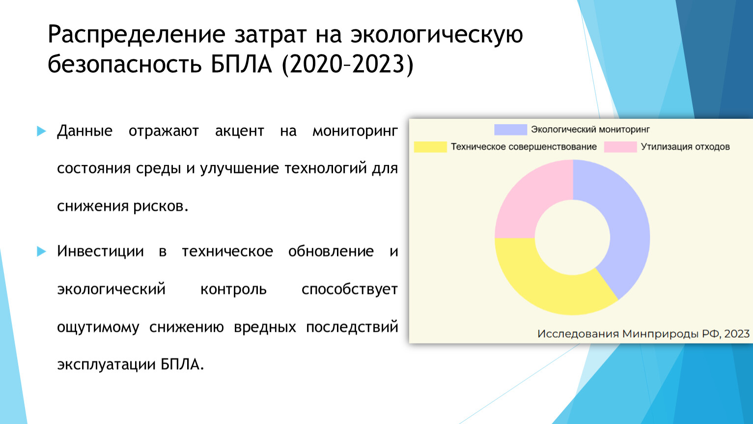 Распределение затрат на экологическую безопасность БПЛА (2020–2023)