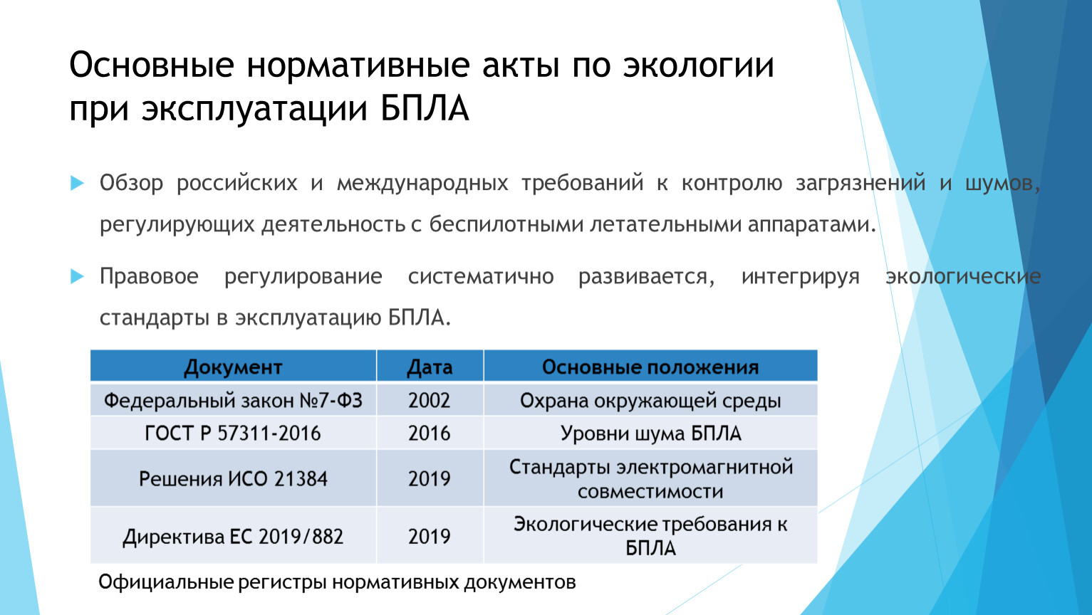 Основные нормативные акты по экологии при эксплуатации БПЛА