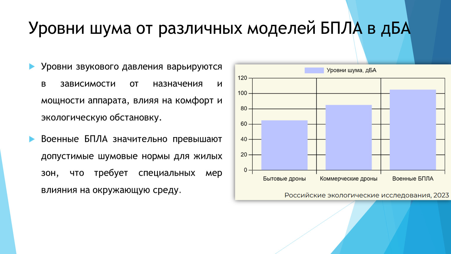 Военные БПЛА значительно превышают допустимые шумовые нормы для жилых зон, что требует специальных мер влияния на окружающую среду.