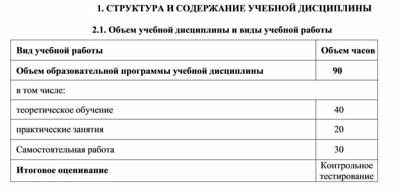 2. СТРУКТУРА И СОДЕРЖАНИЕ УЧЕБНОЙ ДИСЦИПЛИНЫ
