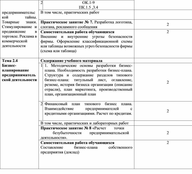 Тема 2.4 Бизнес-планирование предпринимательской деятельности |