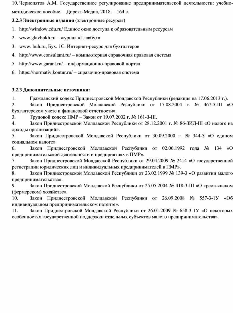 10. Чернопятов А.М. Государственное регулирование предпринимательской деятельности: учебно-методическое пособие. – Директ-Медиа, 2018. – 164 с.