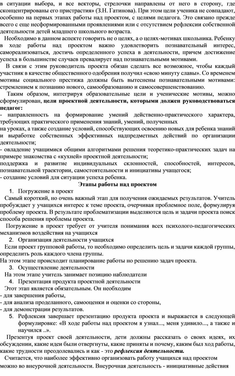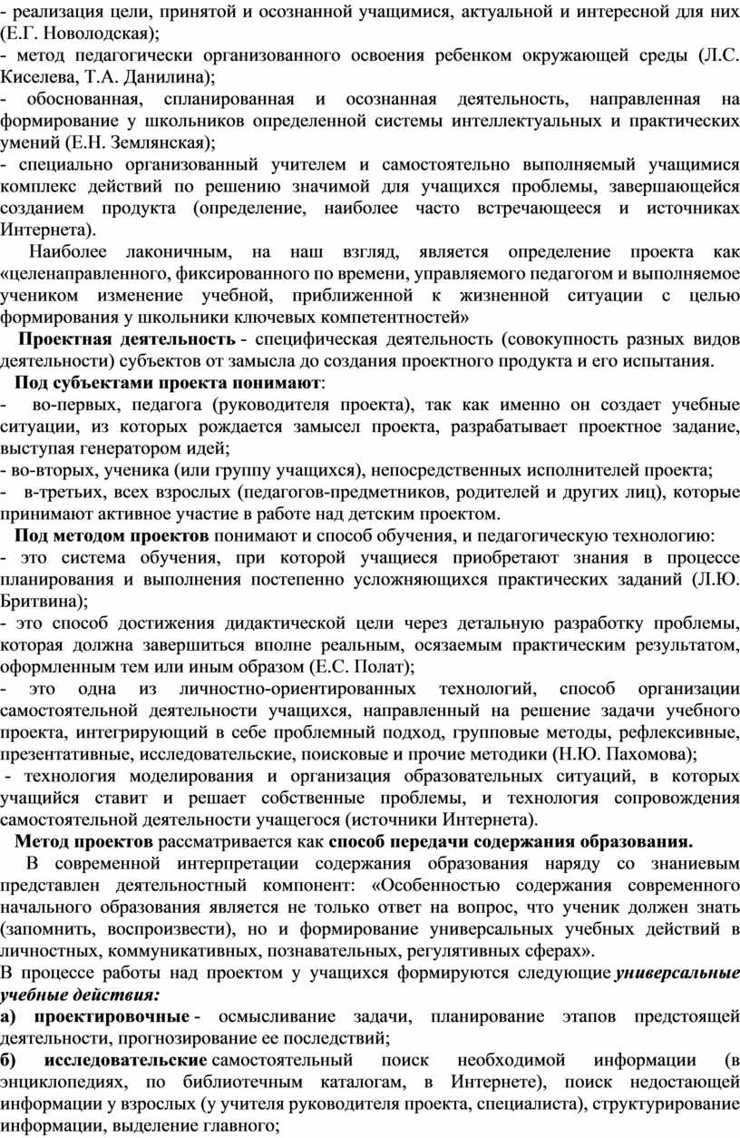- дано теоретическое обоснование проектной методики в ее психолого-педагогическом аспекте с учетом специфики начальной ступени;