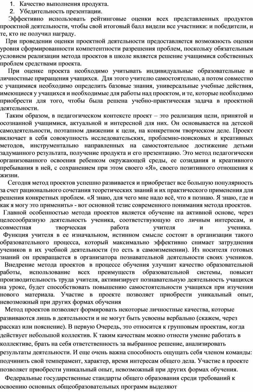 В то же время метод проектов рассматривается как педагогическая технология, цель которой ориентирование ученика па актуализацию имеющихся знаний и приобретение новых (порой путем самообразования) для активного включения в проектировочную деятельность в социокультурной среде.