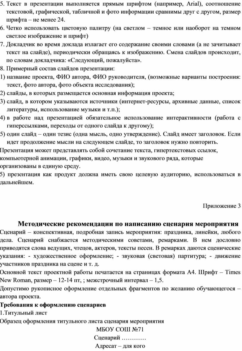 Требования к оформлению сценариев