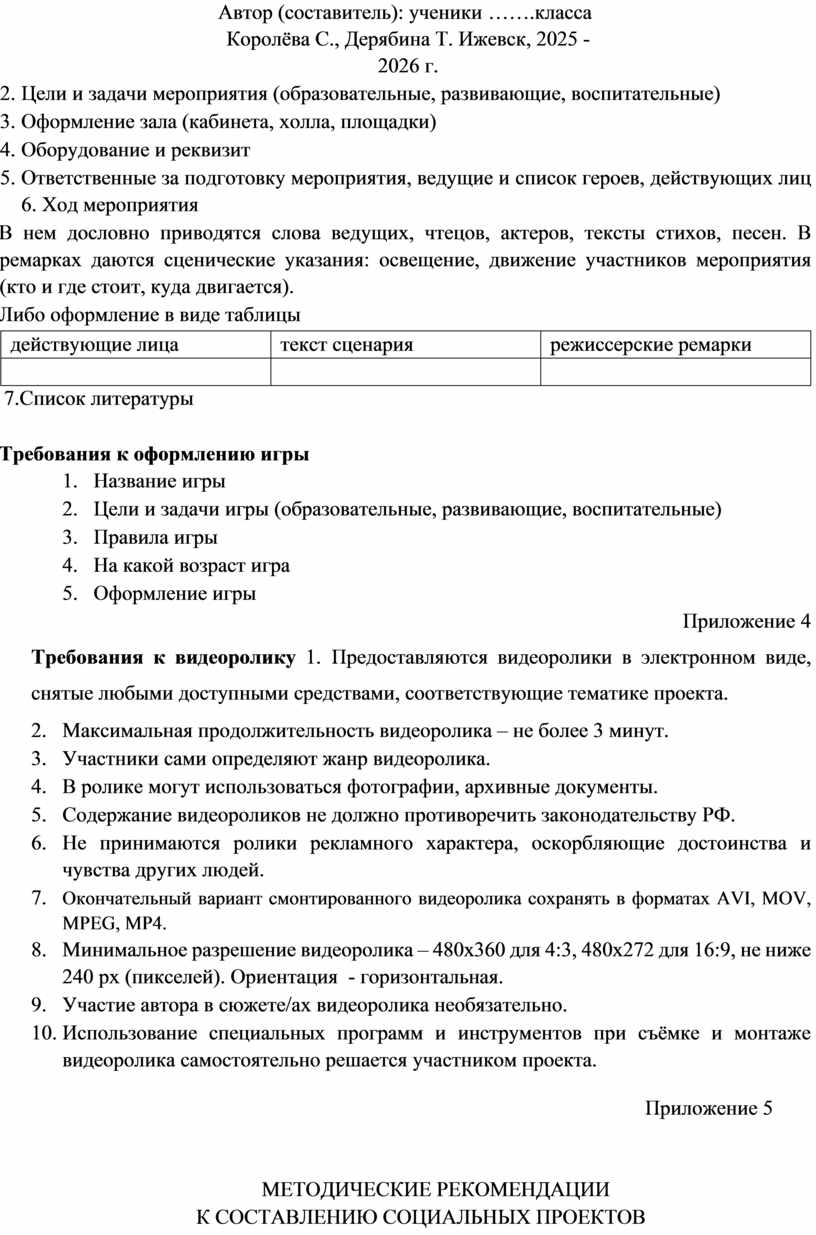Приложение 4 Требования к видеоролику 1. Предоставляются видеоролики в электронном виде, снятые любыми доступными средствами, соответствующие тематике проекта.
