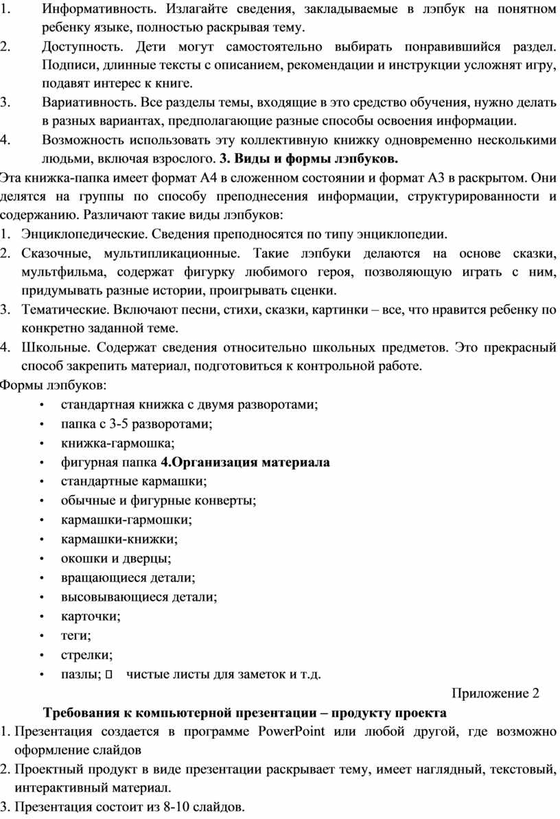 Методические требования по созданию и оформлению лэпбука 1.Что такое лэпбук
