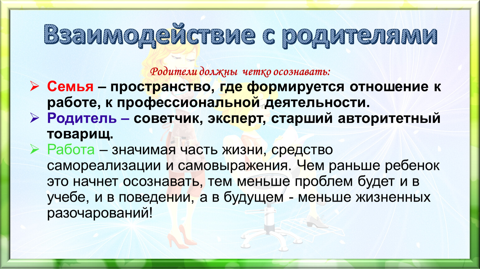 Семья – пространство, где формируется отношение к работе, к профессиональной деятельности.