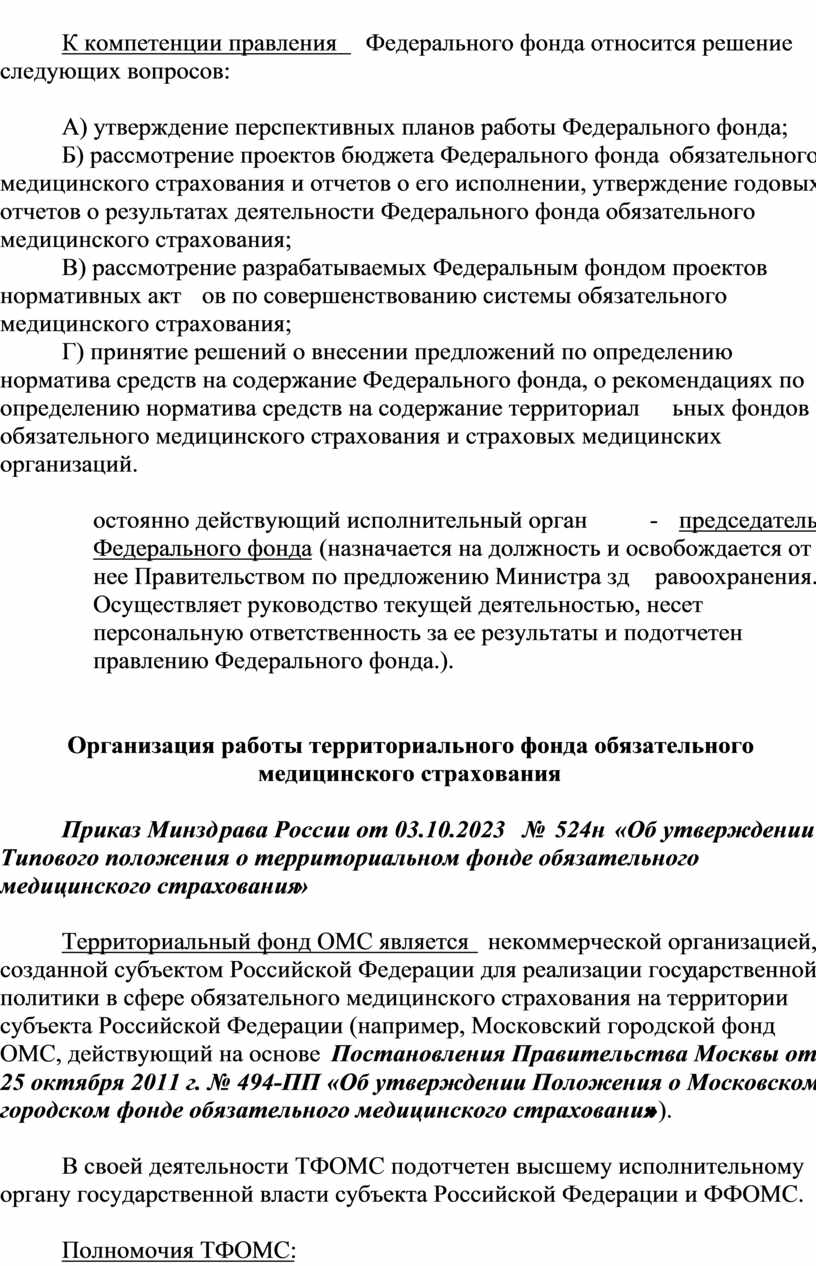 Приказ Минздрава России от 03.10.2023 № 524н «Об утверждении Типового положения о территориальном фонде обязательного медицинского страхования»