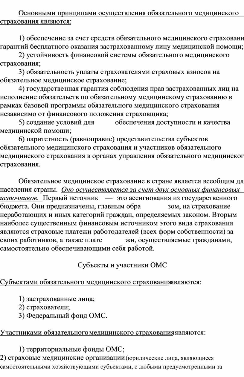 Основными принципами осуществления обязательного медицинского страхования являются: