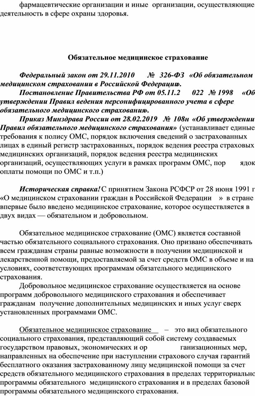 Историческая справка! С принятием Закона РСФСР от 28 июня 1991 г. «О медицинском страховании граждан в Российской Федерации» в стране впервые было введено медицинское страхование, которое осуществляется в двух видах — обязательном и добровольном.