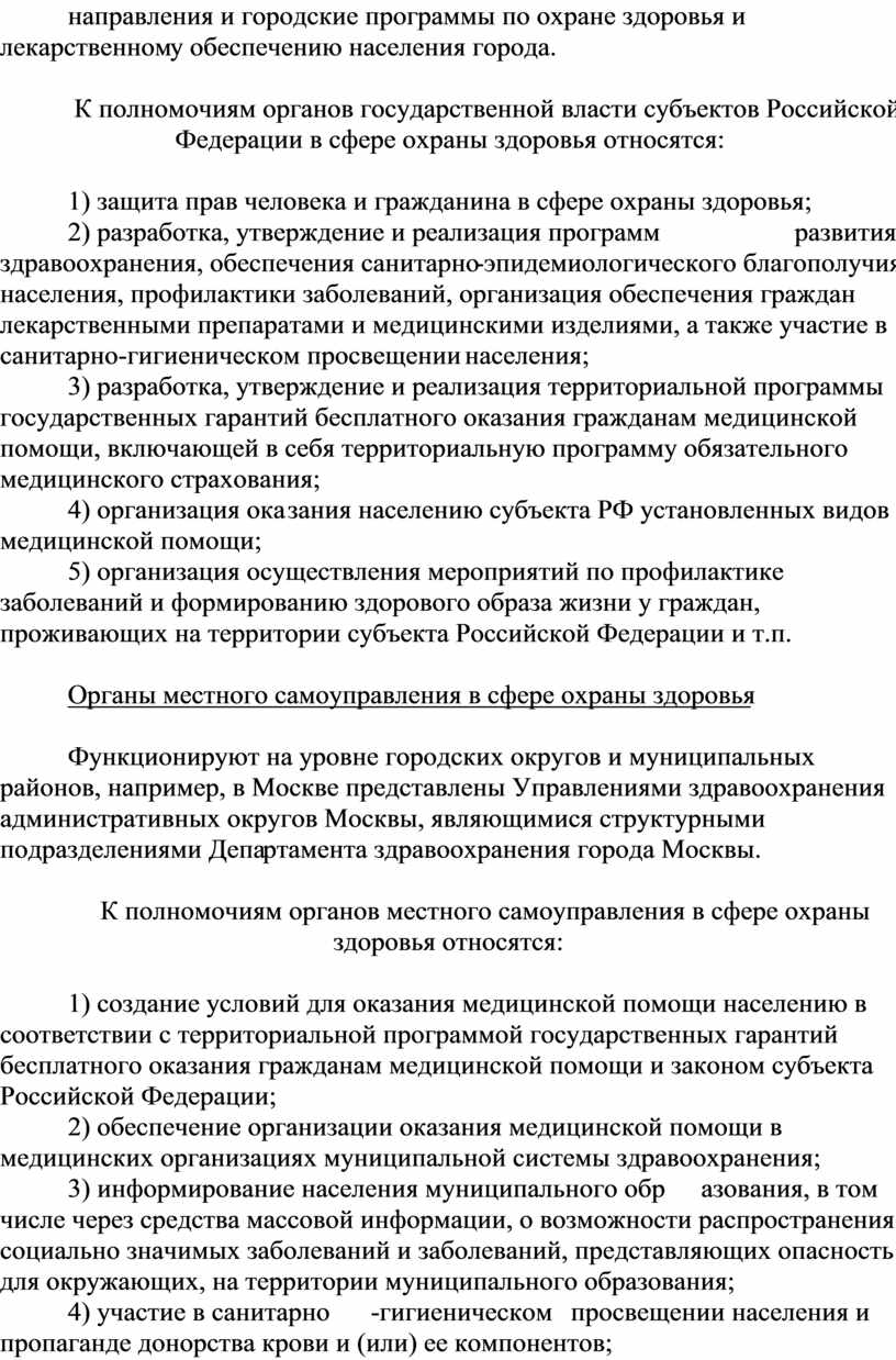 Органы местного самоуправления в сфере охраны здоровья