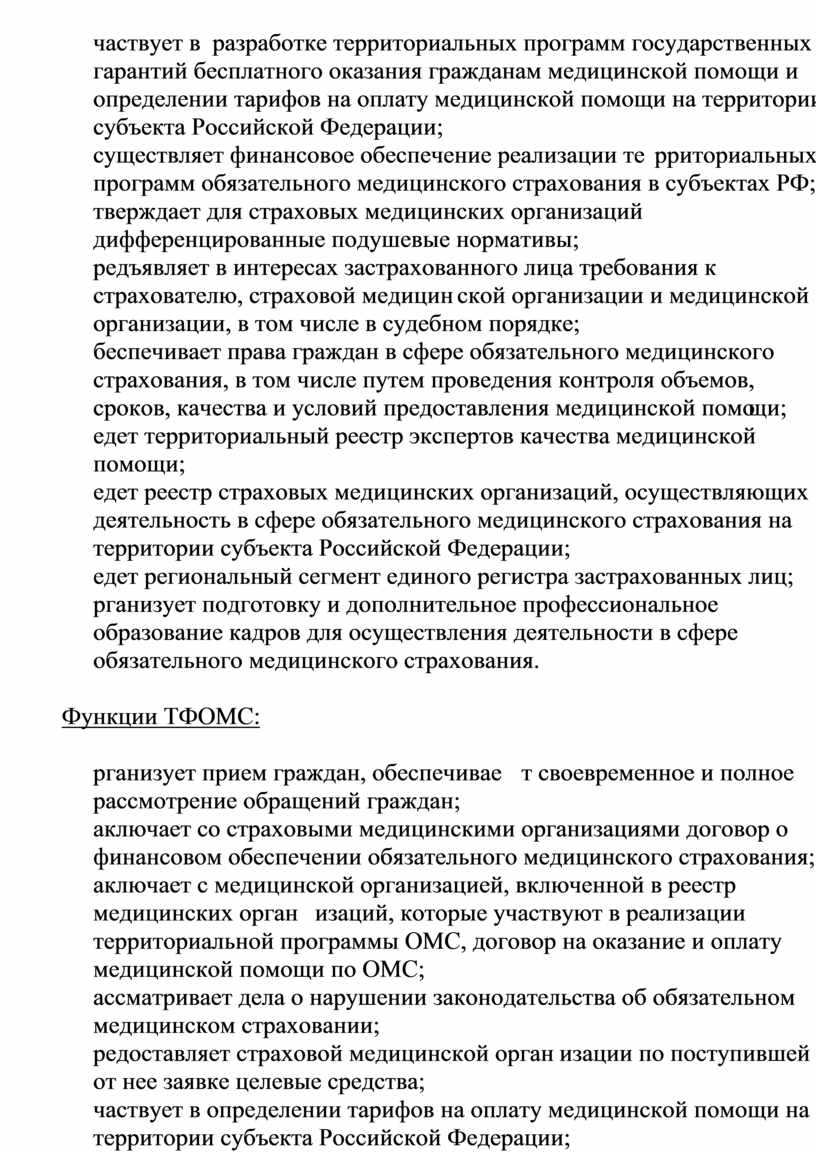 Организация работы территориального фонда обязательного медицинского страхования