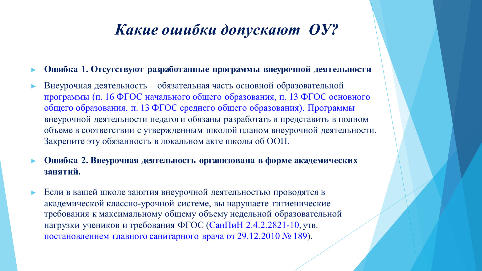 ▶ Если в вашей школе занятия внеурочной деятельностью проводятся в академической классно-урочной системе, вы нарушаете гигиенические