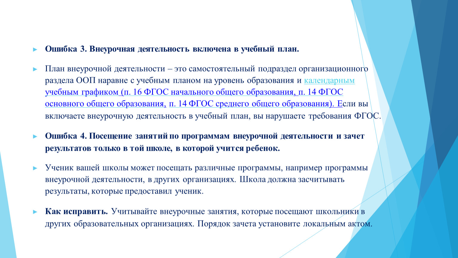 ▶ Ошибка 4. Посещение занятий по программам внеурочной деятельности и зачет