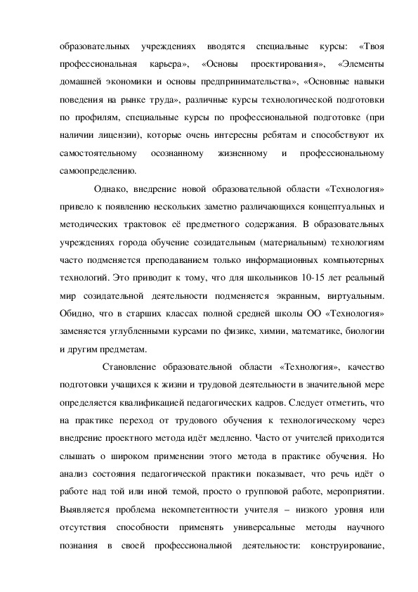Однако, внедрение новой образовательной области «Технология»
