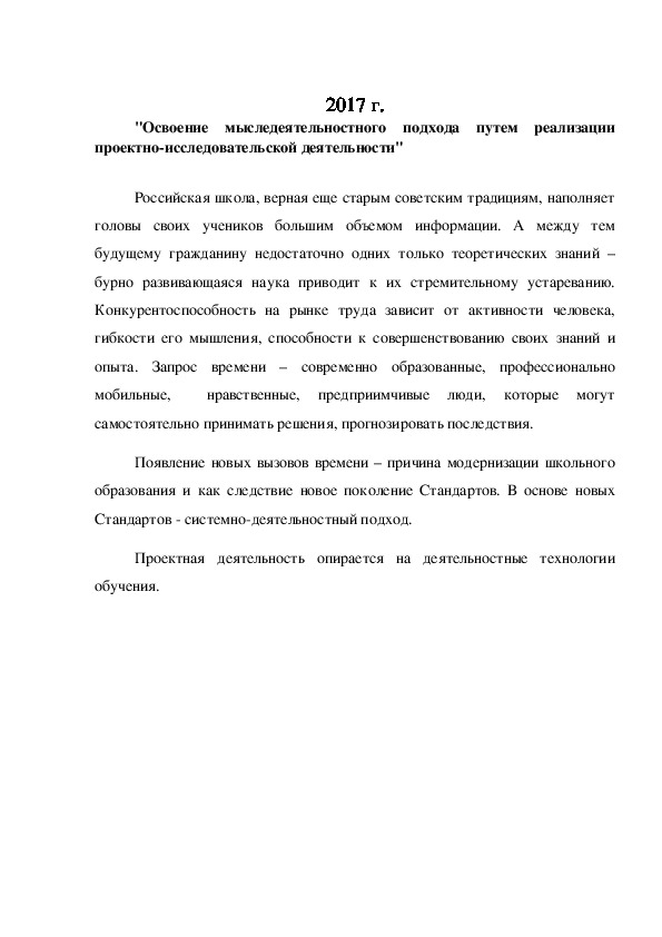 проектноисследовательской деятельности"