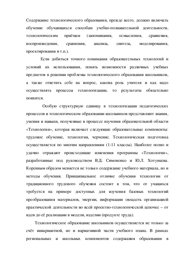 обучения по образовательной области «Технология» требует разработки