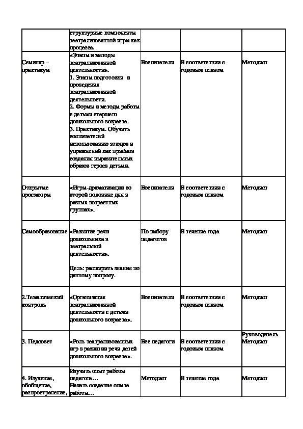 Планируя методическую работу с педагогами ДОУ по данному вопросу, можно