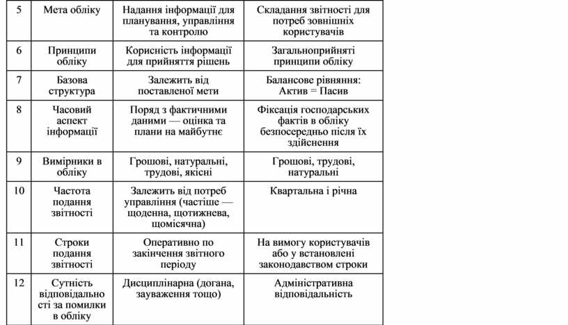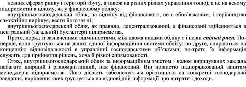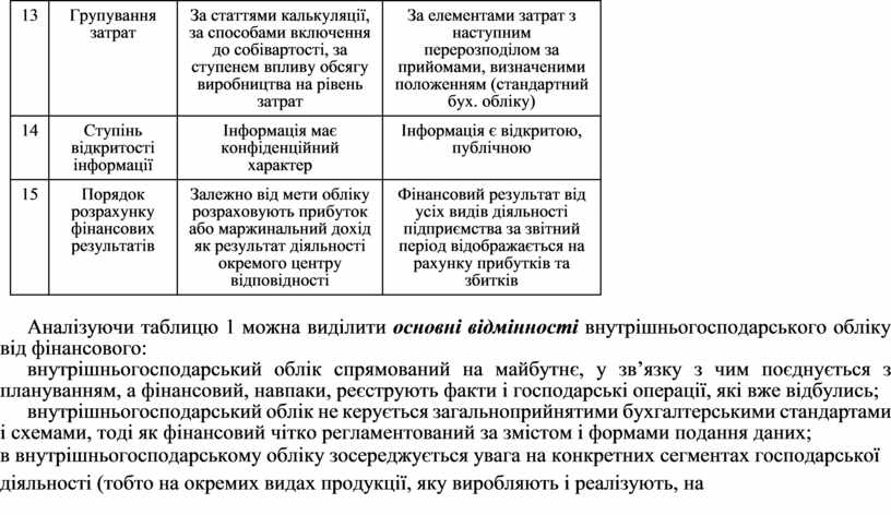 Аналізуючи таблицю 1 можна виділити основні відмінності внутрішньогосподарського обліку від фінансового: