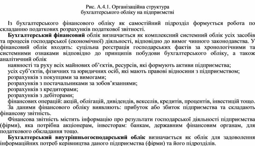 Значний вплив на організаційну побудову бухгалтерського обліку на підприємстві має роздільна побудова фінансового та внутрішньогосподарського обліку, рис А.4.1.