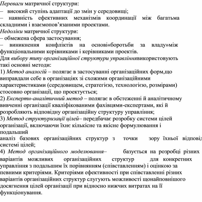 Для вибору типу організаційної структури управліннявикористовують такі основні методи: