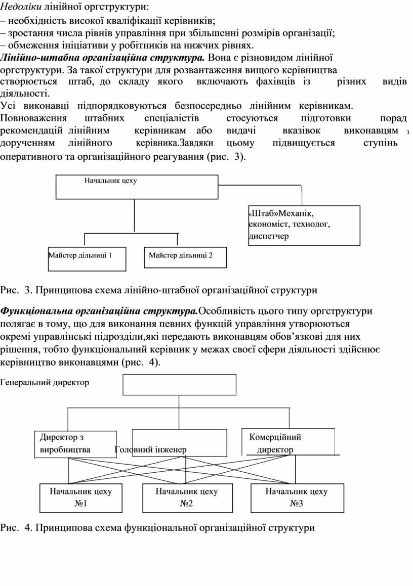 2. Горизонтальний поділ організації, тобто закріплення видів діяльності за лінійними та штабними (функціональними) підрозділами.