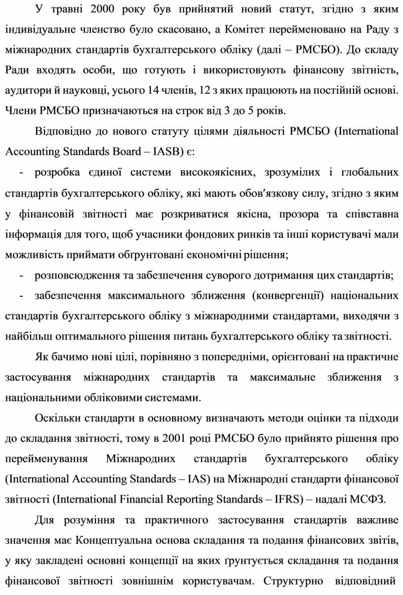 Відповідно до нового статуту цілями діяльності РМСБО (International Accounting Standards Board – IASB) є: