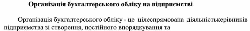 Організація бухгалтерського обліку - це цілеспрямована діяльність керівників підприємства зі створення, постійного впорядкування та
