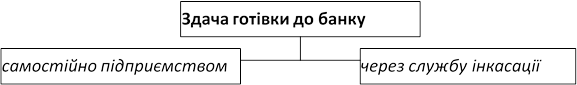 Здача готівки підприємствами через службу інкасації передбачає укладання угоди між підприємством і банком. При передачі готівки інкасатору оформляється супровідна відомість, яка виписується в трьох примірниках. Після прийняття інкасатором сумки з готівкою, інкасатор передає касиру пусту інкасаторські сумку, розписується на копії супровідної відомості, вказує на ній дату, ставить відтиск печатки. Для касира підприємства документом, який свідчить про здачу виручки інкасатору, є копія супровідної відомості за підписом інкасатора (третій примірник).