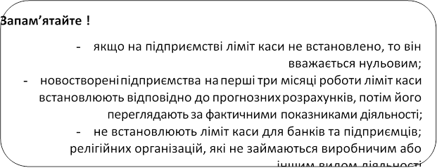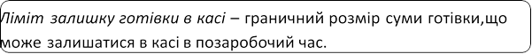 Розмір залишку готівкових коштів у касі повинен відповідати ліміту.