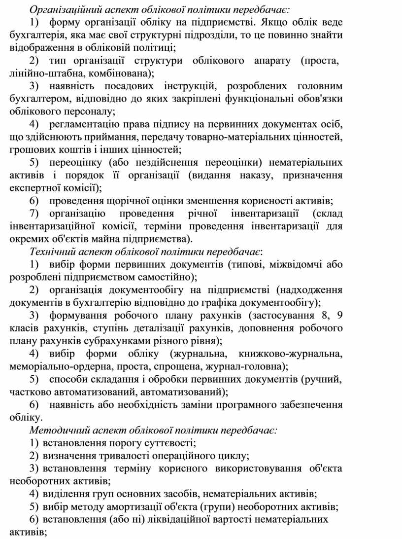 1) форму організації обліку на підприємстві. Якщо облік веде бухгалтерія, яка має свої структурні підрозділи, то це повинно знайти відображення в обліковій політиці;