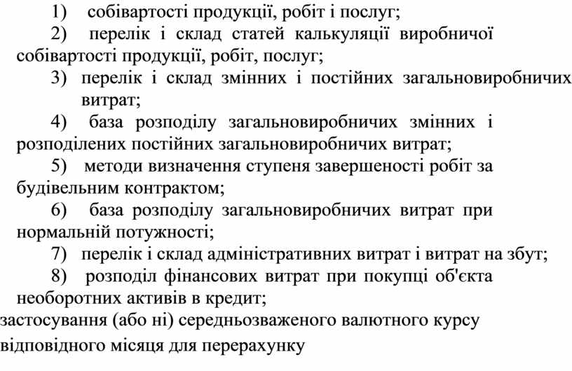 17) вибір методу калькуляції виробничої собівартості продукції, робіт і послуг;
