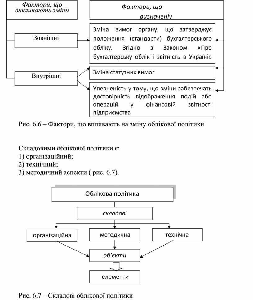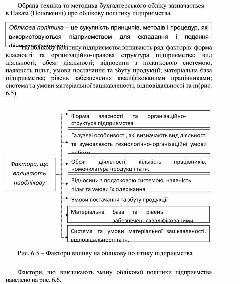Рис. 6.5 – Фактори впливу на облікову політику підприємства Фактори, що викликають зміну облікової політики підприємства