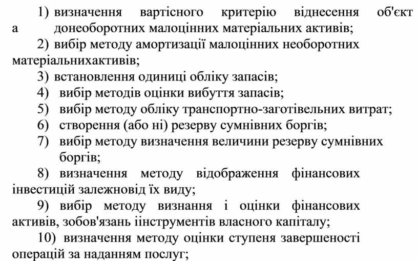 8) вибір методу амортизації малоцінних необоротних матеріальних активів;