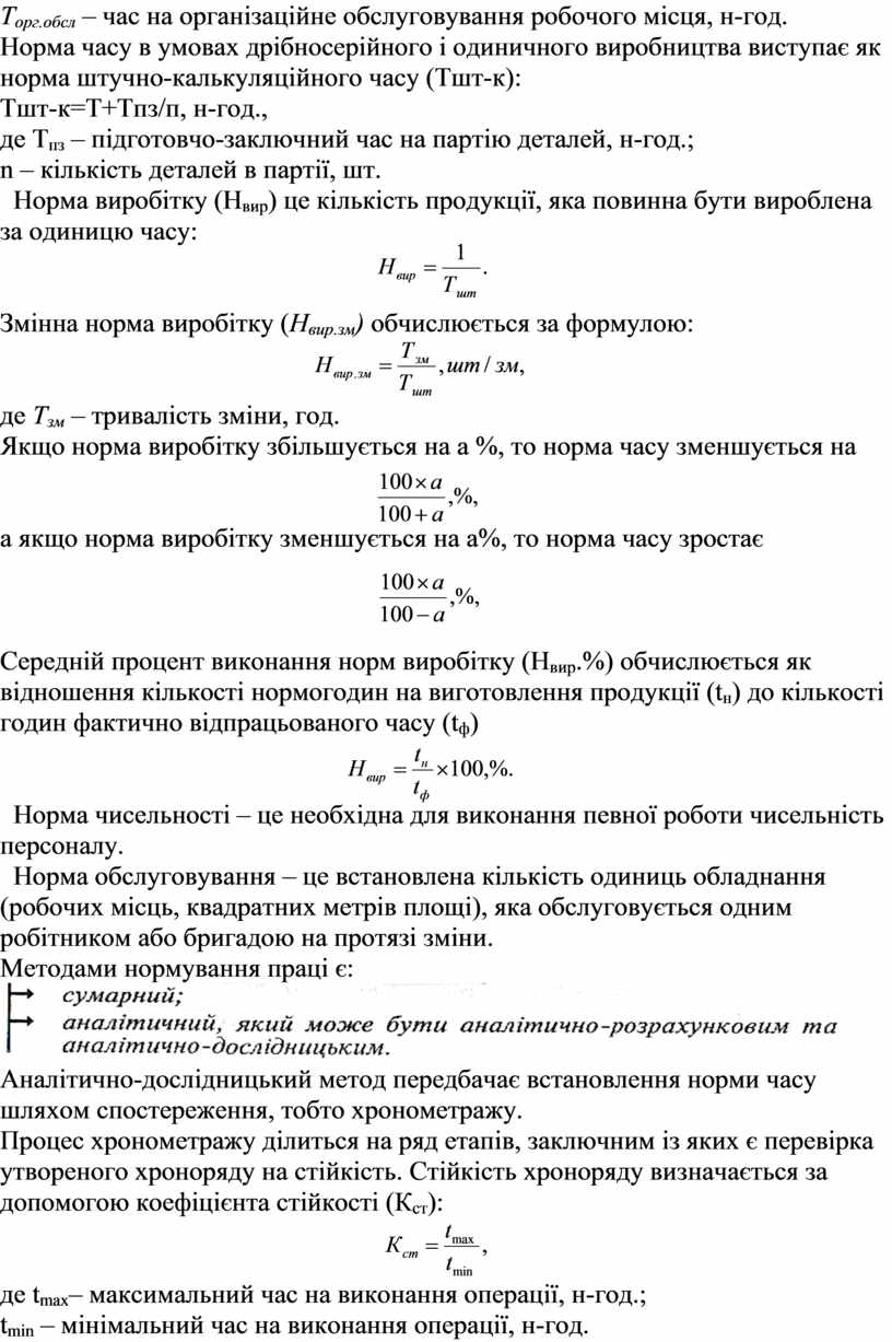 Норма обслуговування – це встановлена кількість одиниць обладнання (робочих місць, квадратних метрів площі), яка обслуговується одним робітником або бригадою на протязі зміни.