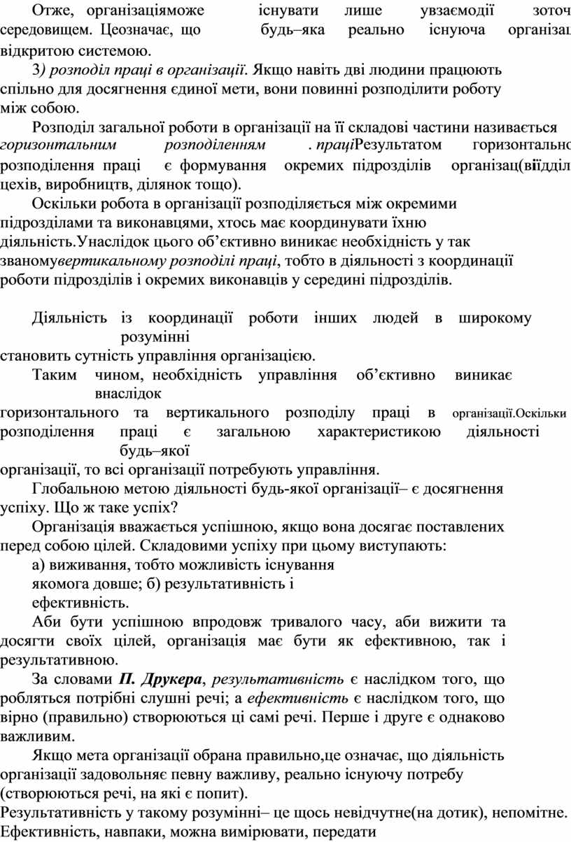 горизонтального та вертикального розподілу праці в організації.Оскільки