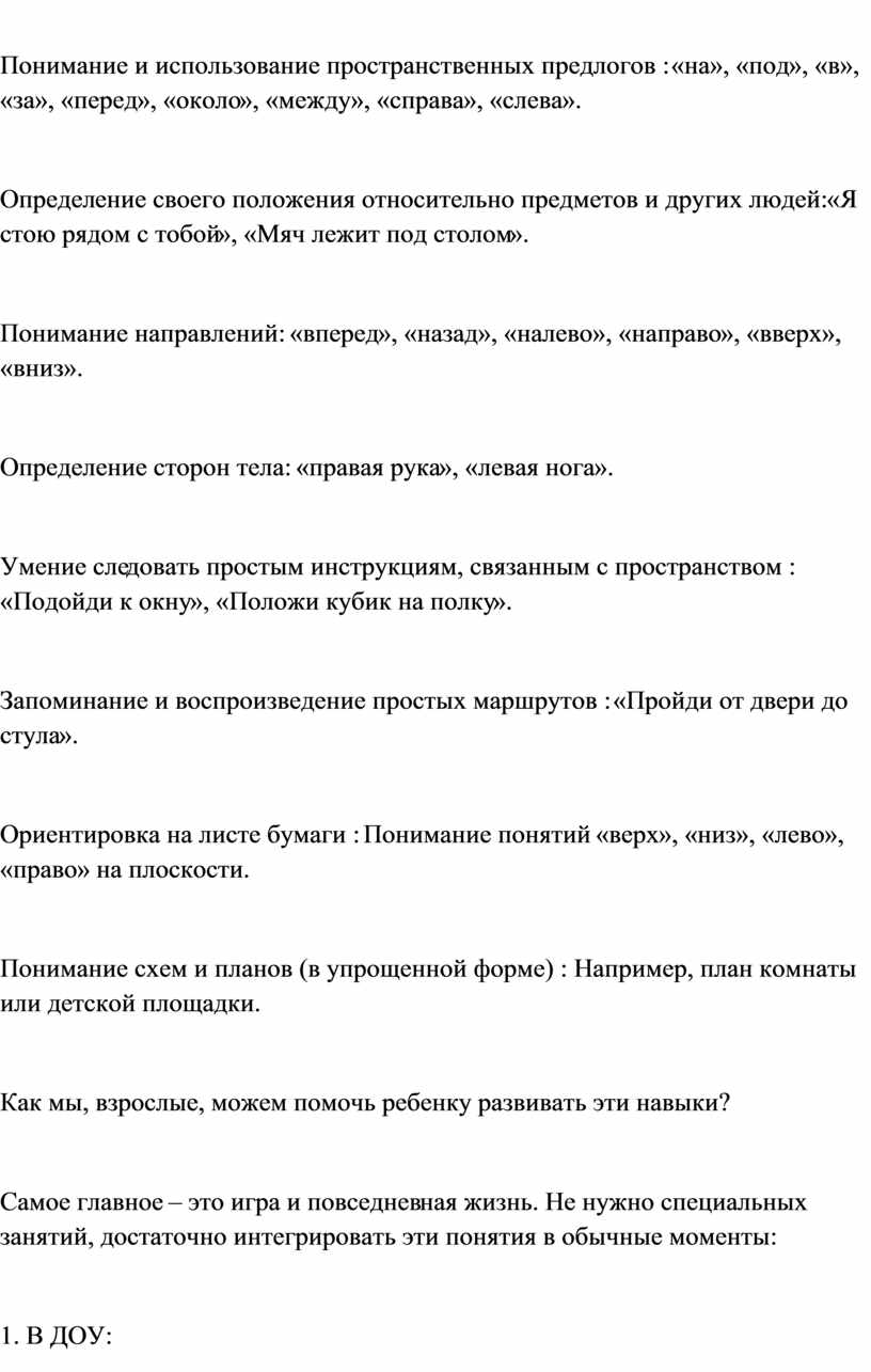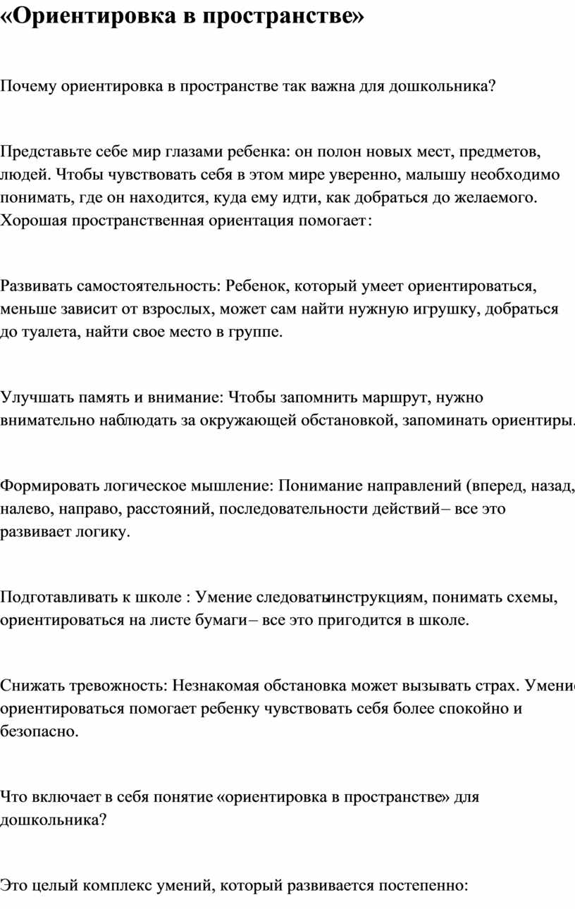Что включает в себя понятие «ориентировка в пространстве» для дошкольника?