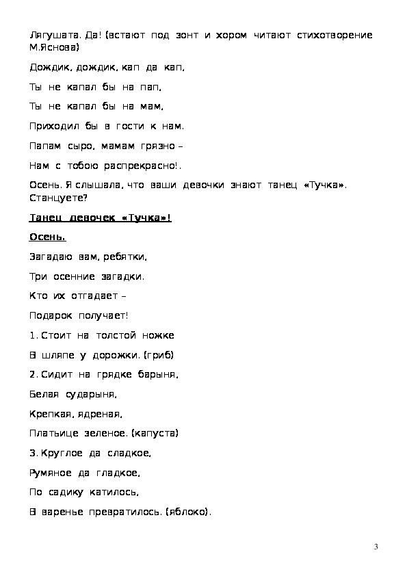 Осень. Я слышала, что ваши девочки знают танец «Тучка».