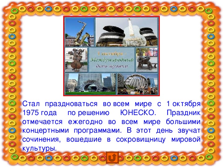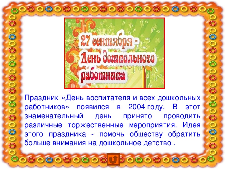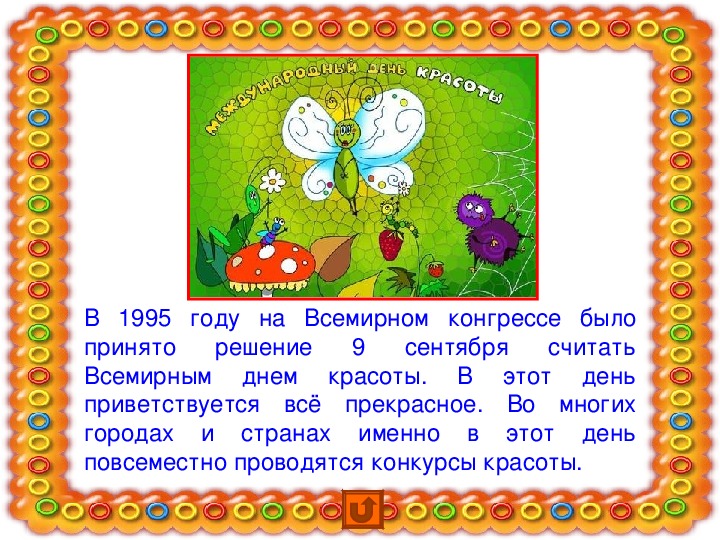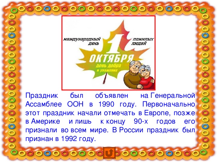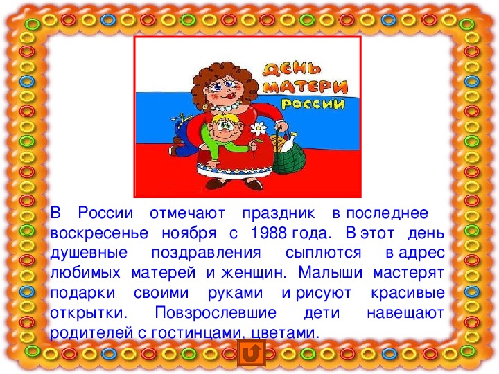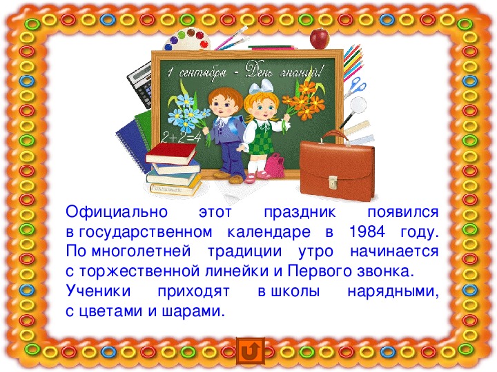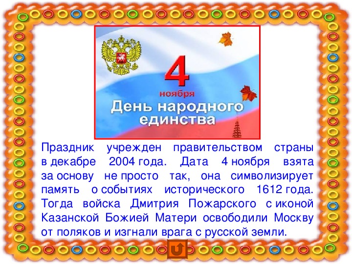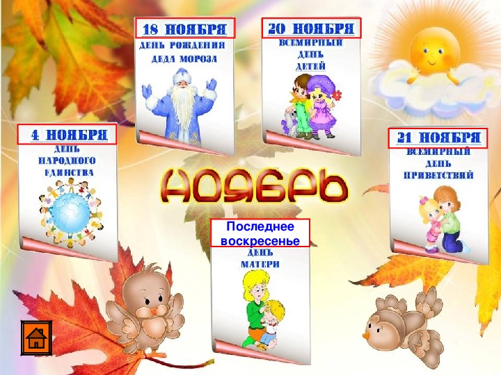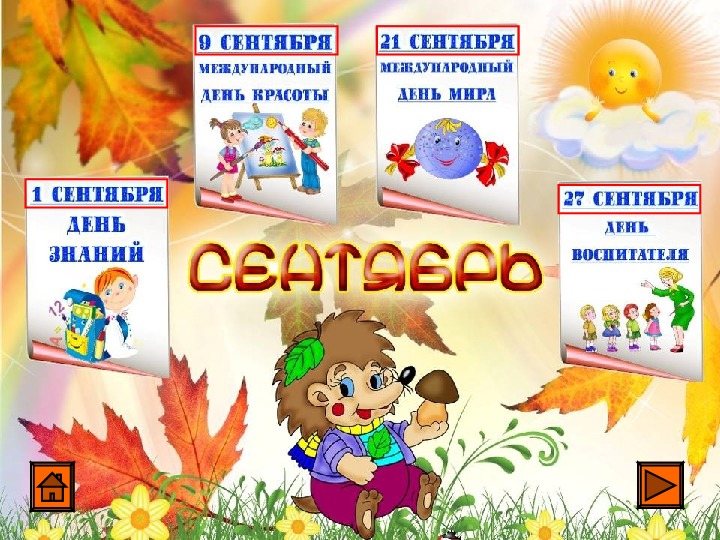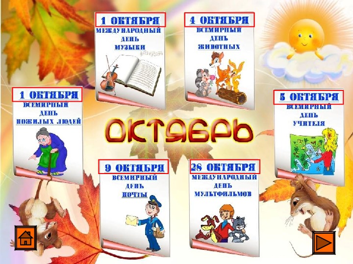 Переход осуществляется по управляющей кнопке. Для выбора праздника используется гиперссылка, нужно нажать на даты месяца.Осенние праздники