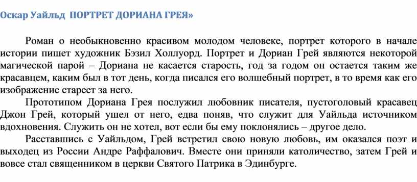 Прототипом Дориана Грея послужил любовник писателя, пустоголовый красавец Джон Грей, который ушел от него, едва поняв, что служит для Уайльда источником вдохновения. Служить он не хотел, вот если бы ему поклонялись – другое дело.