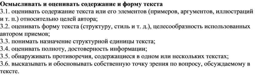 Осмысливать и оценивать содержание и форму текста