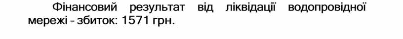 Фінансовий результат від ліквідації водопровідної мережі – збиток: 1571 грн.