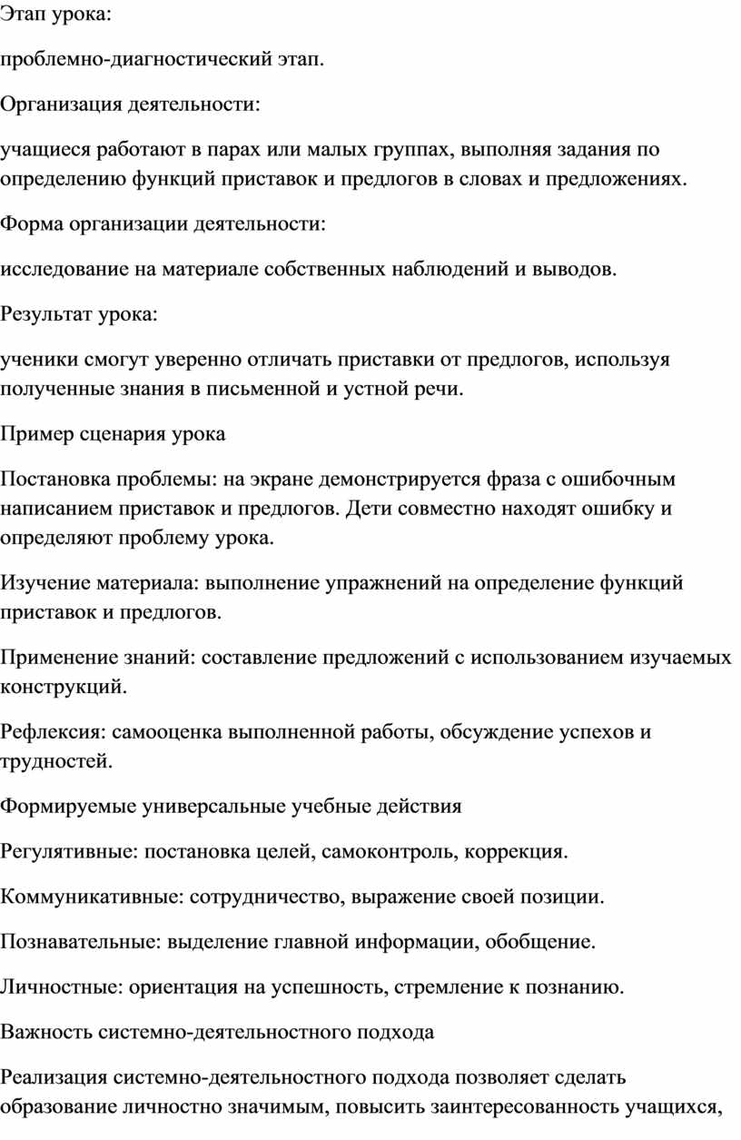 Рассмотрим пример урока русского языка по теме «Правописание приставок и предлогов».